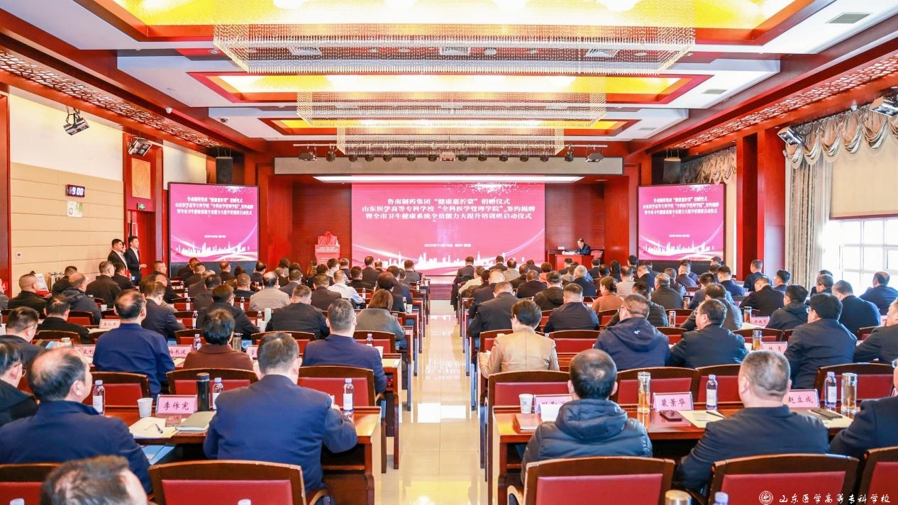 11月18日,山东医学高等专科学校与鲁南制药集团、临沂市营养健康协会共建全科医学管理学院签约暨揭牌仪式在山东新时代药业有限公司举行。鲁南制药集团党委书记、董事长、总经理张贵民,临沂市卫生健康委党组书记、主任,市中医药管理局局长刘恒波,山东医学高等专科学校党委委员、副校长谭成森分别致辞,临沂市卫生健康委党组成员、临沂市卫生健康促进中心党总支书记、主任朱孟国主持仪式。